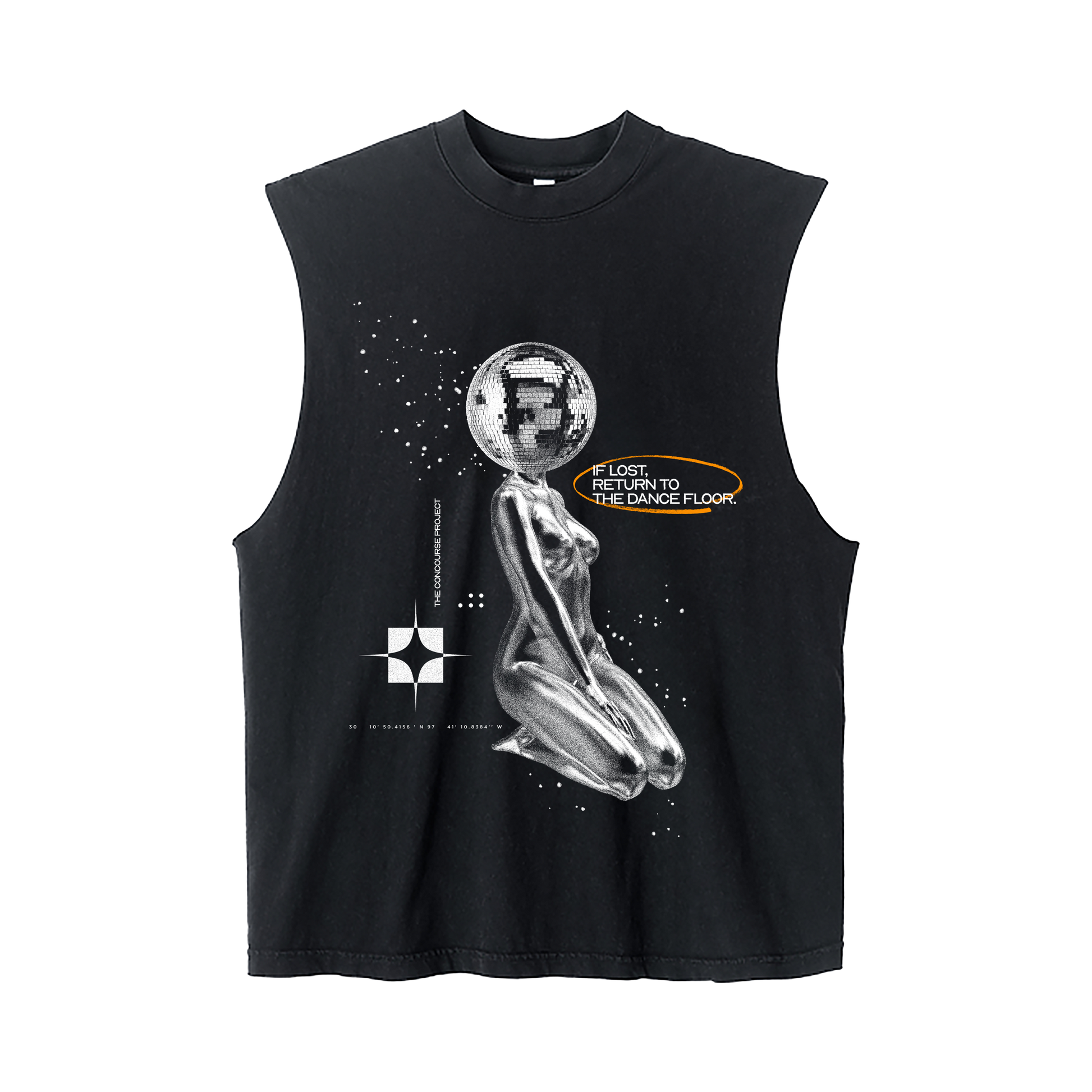 Lose yourself in the music and find your way back to the beat. This isn't just a muscle tee, it's a mantra for the dance floor.